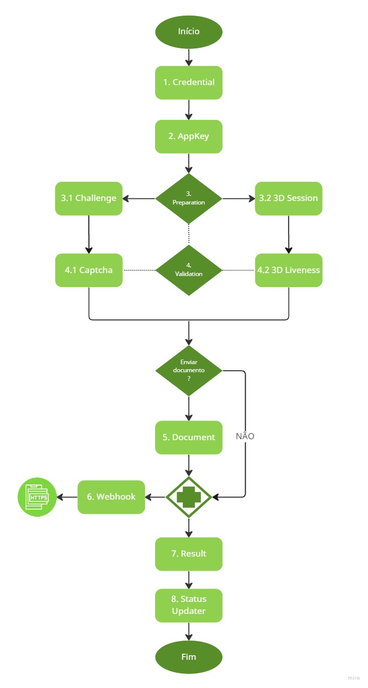 Após a chamada ao /liveness-3d, tanto o token quanto a appkey são finalizados. Ou seja, para gerar uma nova sessão é necessário retornar ao segundo passo e gerar uma nova appkey.
