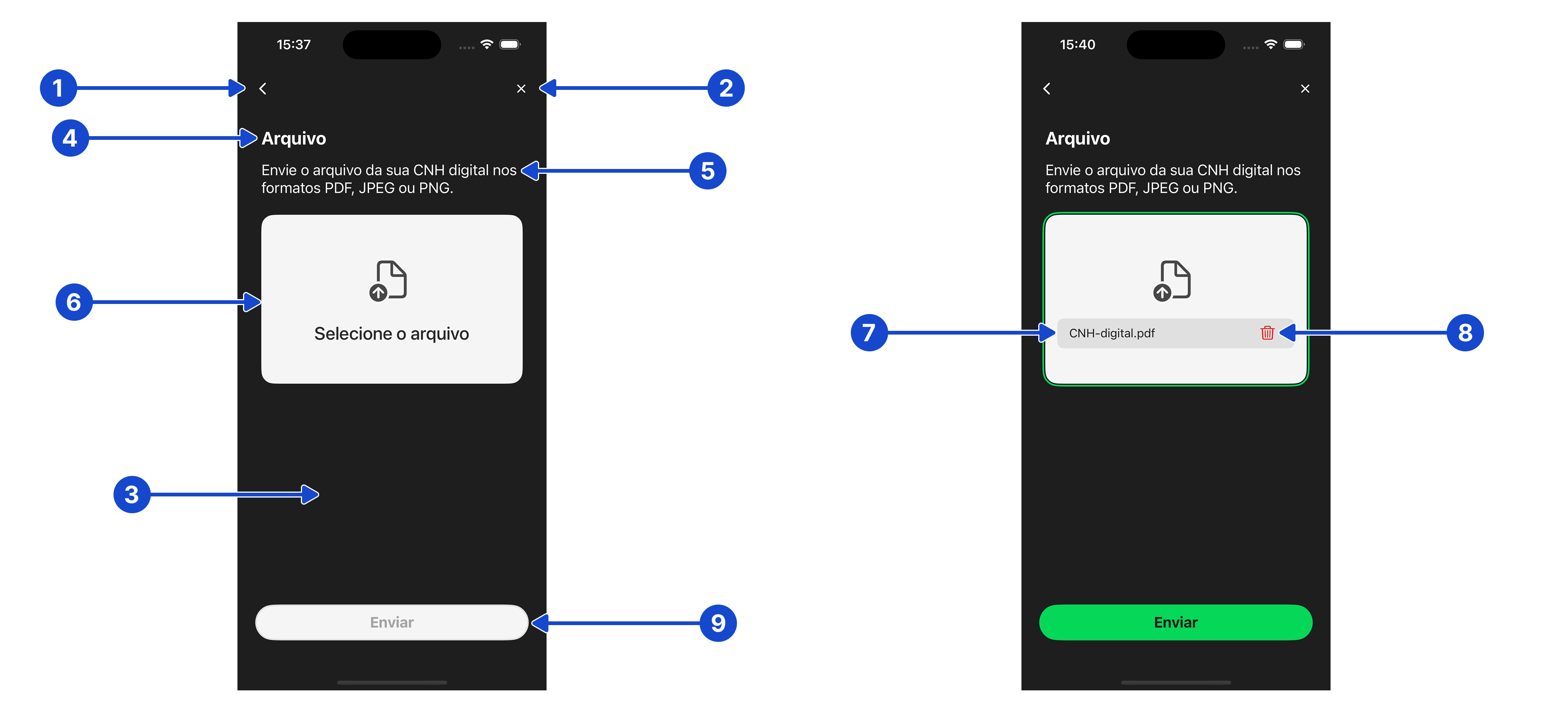 | (3) digitalDocumentOption | Botão para iniciar o fluxo de captura do documento digital. |