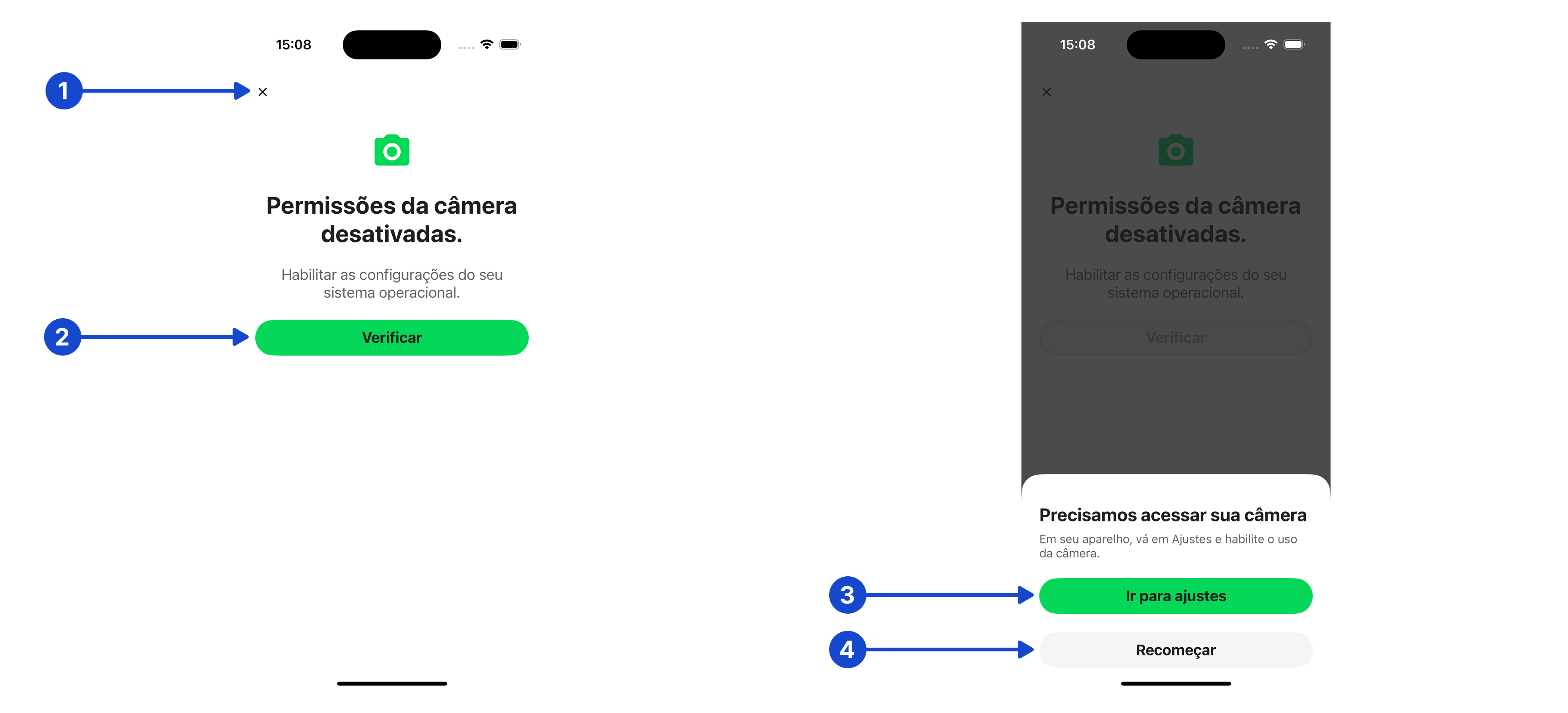 | (4) closeButton | Botão que fecha o fluxo de validação da permissão de câmera e volta para tela anterior. |
